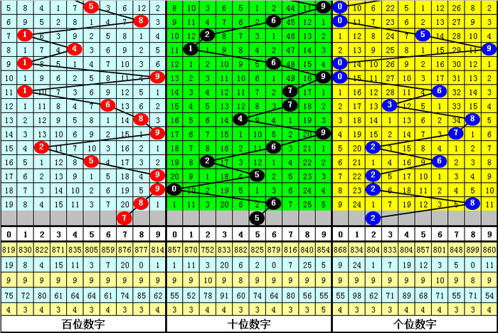 在历史开奖中,单选号码0开出10次,号码7、8、9开出9次,号码6开出8次,号码5开出6次,号码1、2、3开出5次,号码4开出3次,本期双胆参考:57。