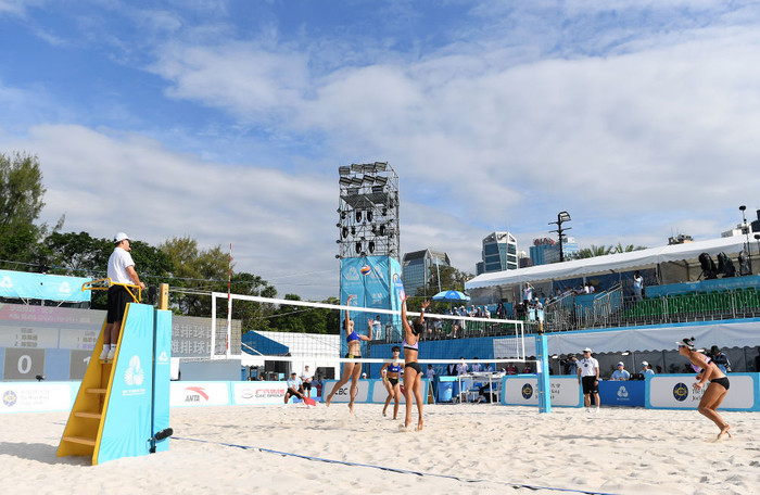 北京时间10月31日,据新华社报道,第十五届全国运动会香港赛区赛事正式拉开帷幕,首个竞赛项目沙滩排球在维多利亚公园展开角逐。
