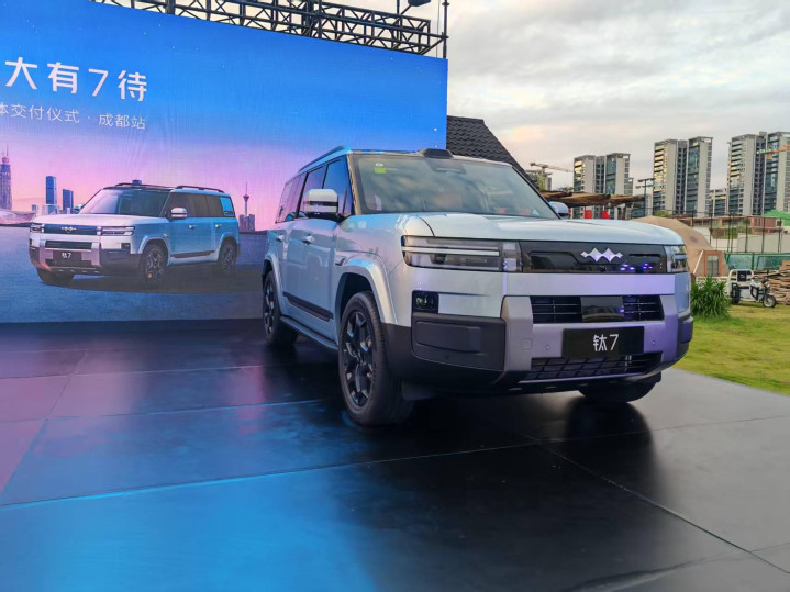 除了钛3新推版,钛7交付也同步启程,那些钛7的车主高兴的接受钥匙,看得出来对于这台车他们很满意。这台钛7定位中大型SUV,凭借4999/1995/1865mm的车身尺寸和2920mm的轴距,实现了“够长、够高、够大”的视觉气场。 得房率70.9%,乘员舱有效长度超3.3米,1米9的高个子也能挺直腰板。