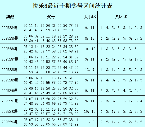 快乐8第2025294期区间分析